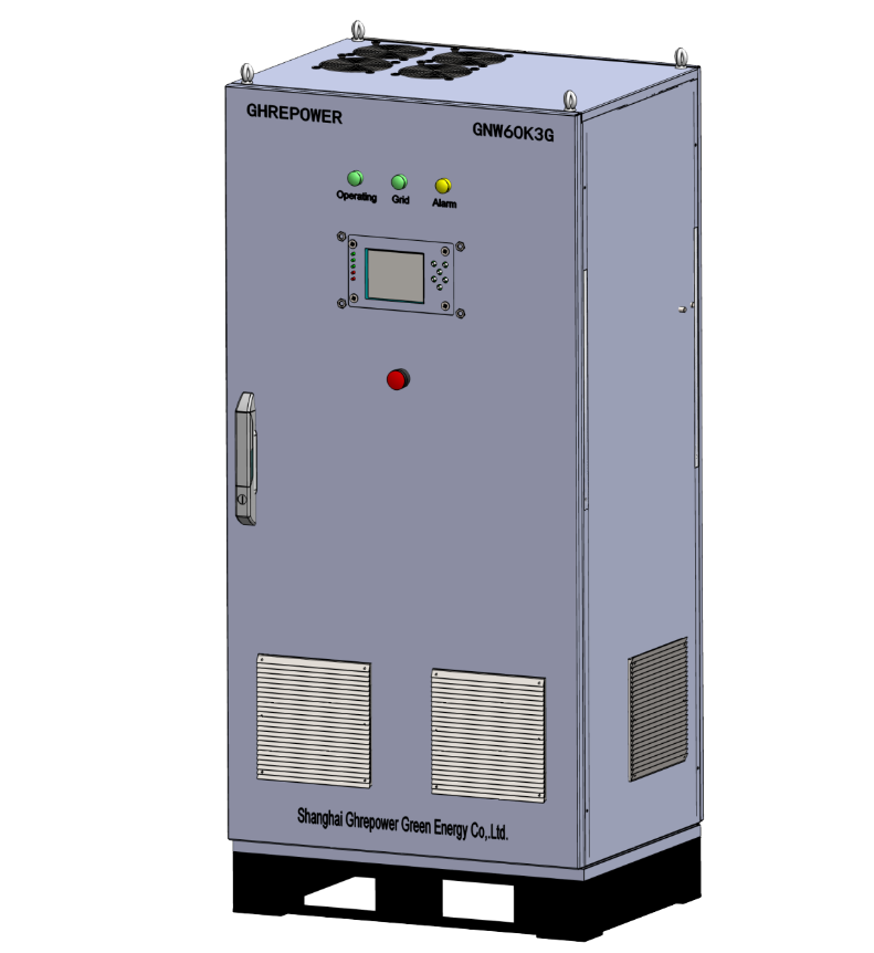 逆變系統(tǒng)配套我公司永磁同步風(fēng)力發(fā)電機(jī)的特點專門設(shè)計,與永磁同步發(fā)電機(jī)具有很好的適應(yīng)性,通過不可控整流,中間斬波升壓是三重斬波升壓,起到了穩(wěn)壓和升壓作用,適應(yīng)了風(fēng)機(jī)的風(fēng)能捕獲策略,即把變動的發(fā)電機(jī)輸出電壓,與整流回路一起最終穩(wěn)定在DC-Link電壓設(shè)定值附近,使DC-Link電壓穩(wěn)定在逆變環(huán)節(jié)所需的直流電壓上。DC/AC變換部分采用兩重逆變策略,通過采用先進(jìn)的PWM脈寬調(diào)制技術(shù),有效減少了輸出諧波(THD%<4%)、提高了系統(tǒng)容量。通過控制上優(yōu)化,使電壓閃變指標(biāo)在國際技術(shù)標(biāo)準(zhǔn)允許范圍內(nèi)。