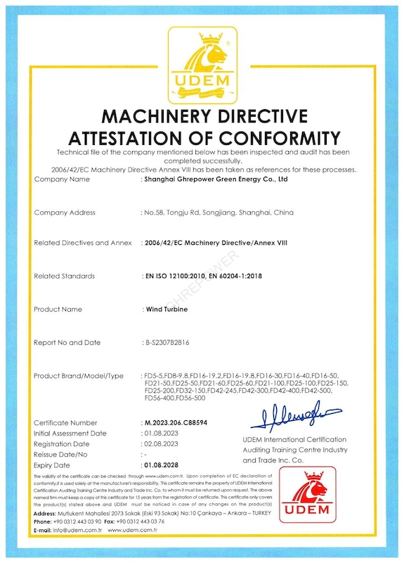 FD16系列風(fēng)力發(fā)電機(jī)根據(jù)IEC61400-2標(biāo)準(zhǔn)設(shè)計(jì),掃風(fēng)面積191平方米;