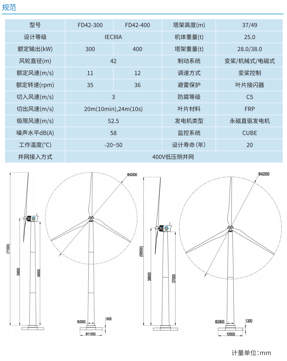 采用低噪音高效率的低速永磁發(fā)電機(jī),直驅(qū)無(wú)齒輪箱傳動(dòng)設(shè)計(jì);