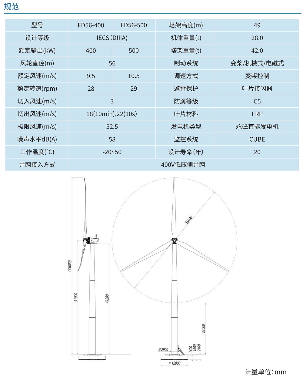 采用低速永磁發(fā)電機(jī),直驅(qū)無(wú)齒輪箱傳動(dòng)設(shè)計(jì),傳動(dòng)系統(tǒng)高效可靠,壽命長(zhǎng)